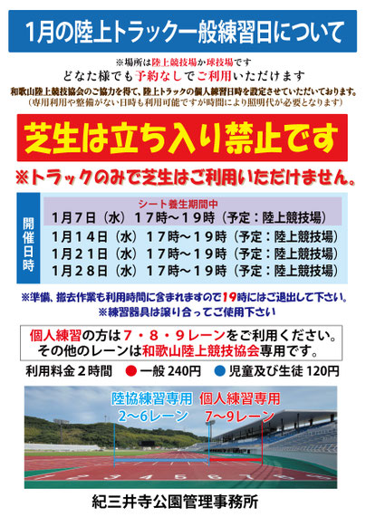 紀三井寺公園(面積約17.23ha、約172,300㎡(平成22年3月に紀三井寺緑地併合)の中に陸上競技場、野球場、テニス場、球技場・補助競技場、登はん場を設置しております。浜の宮の海岸から約600mの距離にあり、公園からは名草山、船尾山が臨めます。紀三井寺公園は災害時の広域避難場所です。陸上競技場は津波避難ビルとなっており地震時は2F入口及び東ゲート2か所が自動で開錠します。北駐車場完成に伴い公園面積は約4300㎡増えました。